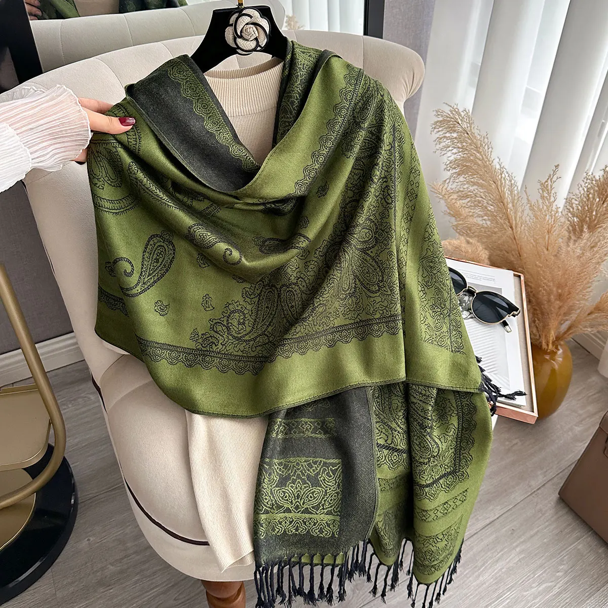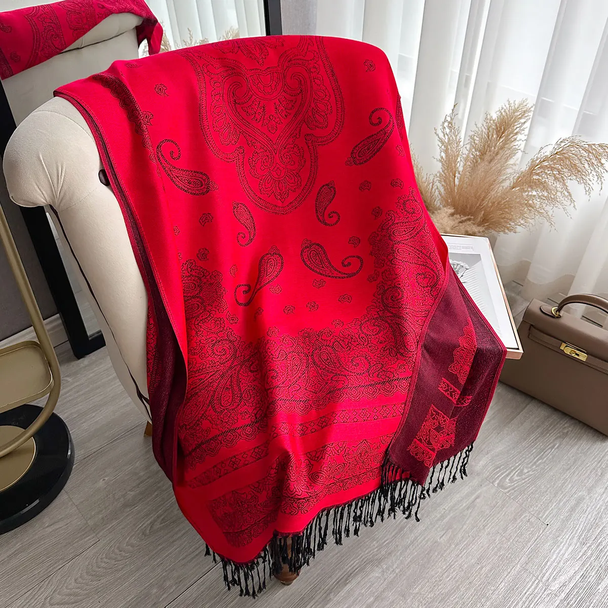 Fringed Paisley Shawl Scarf