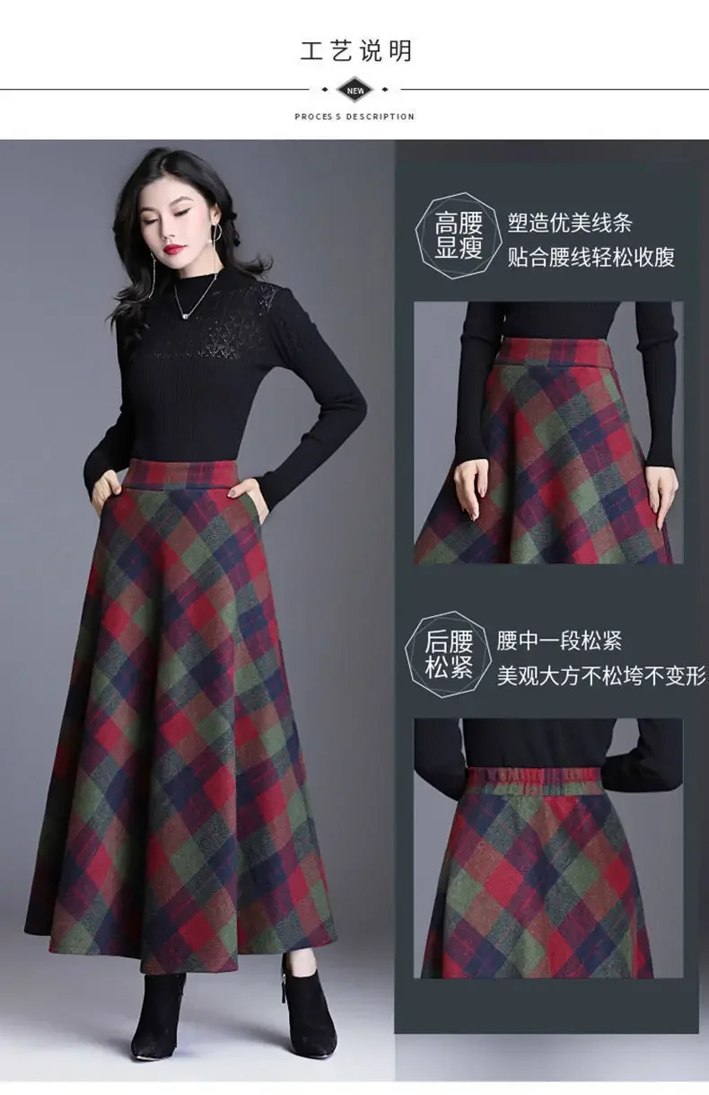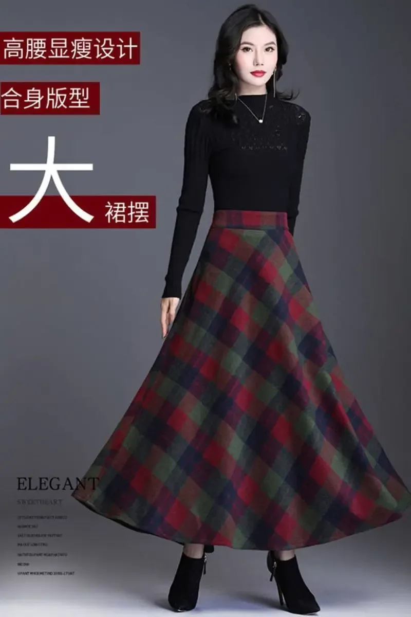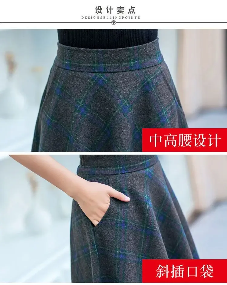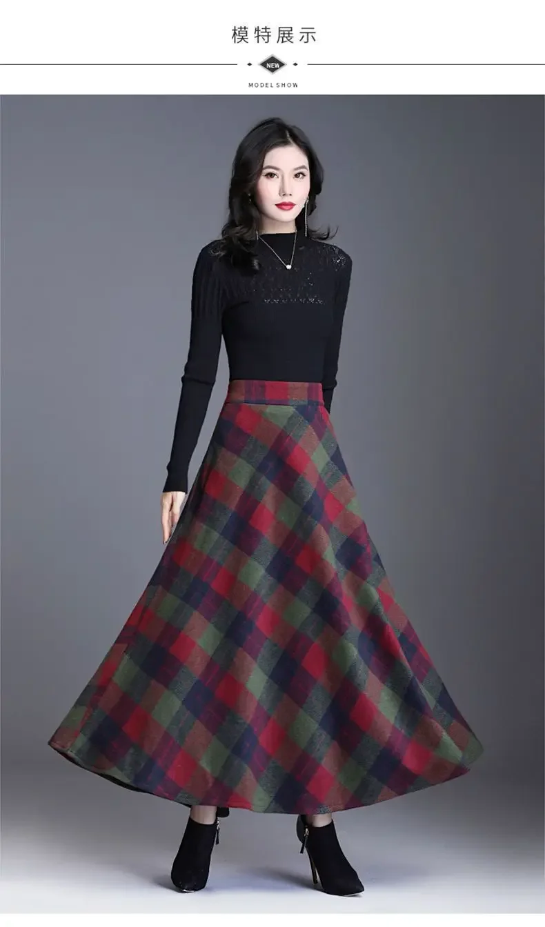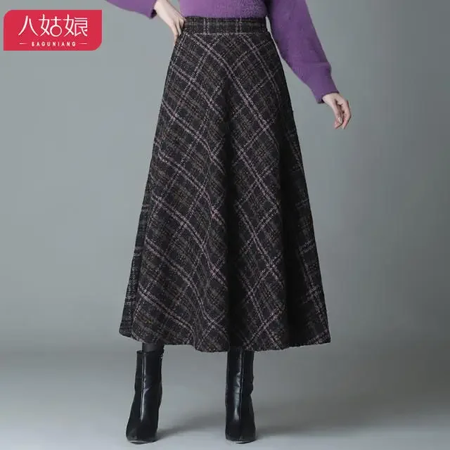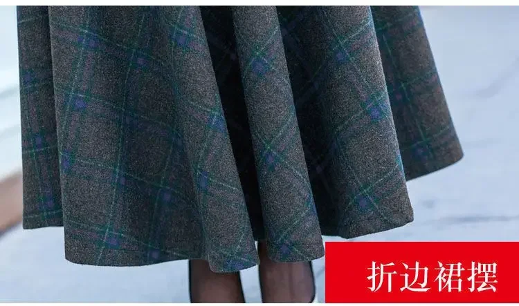 Plaid Woolen High-Waist Zippered Skirt