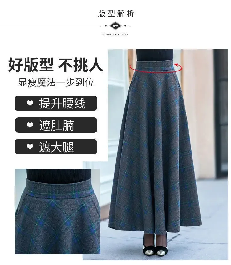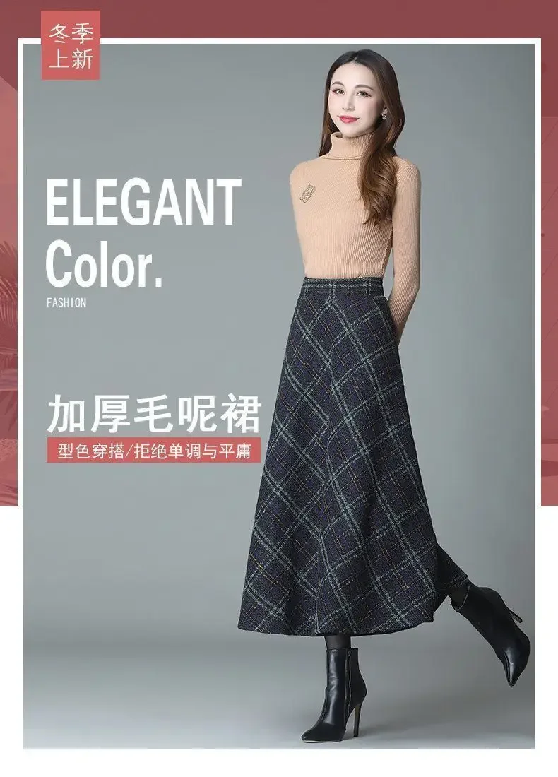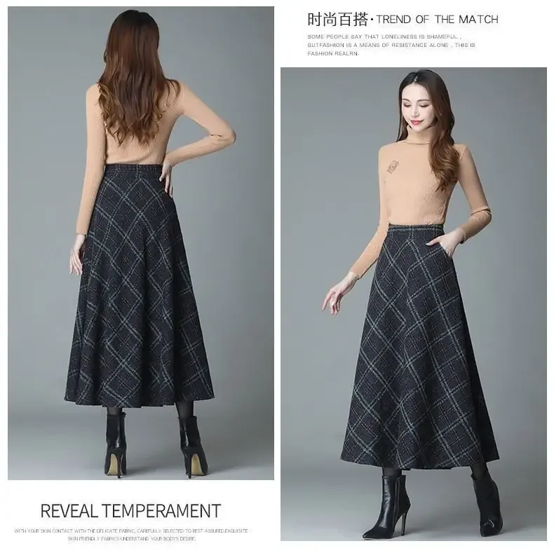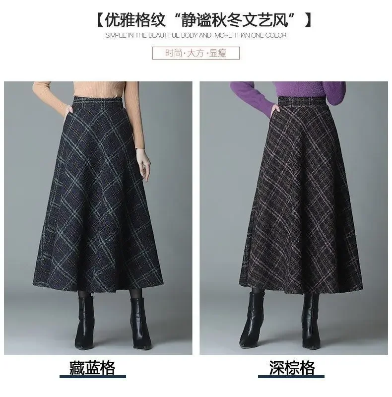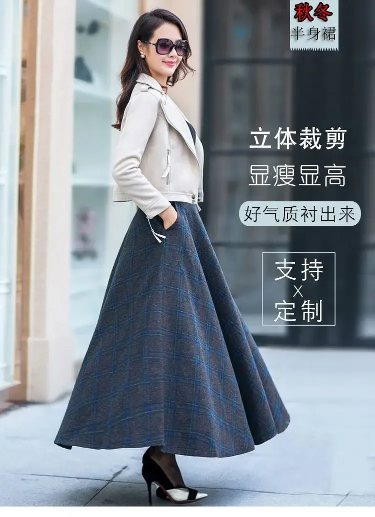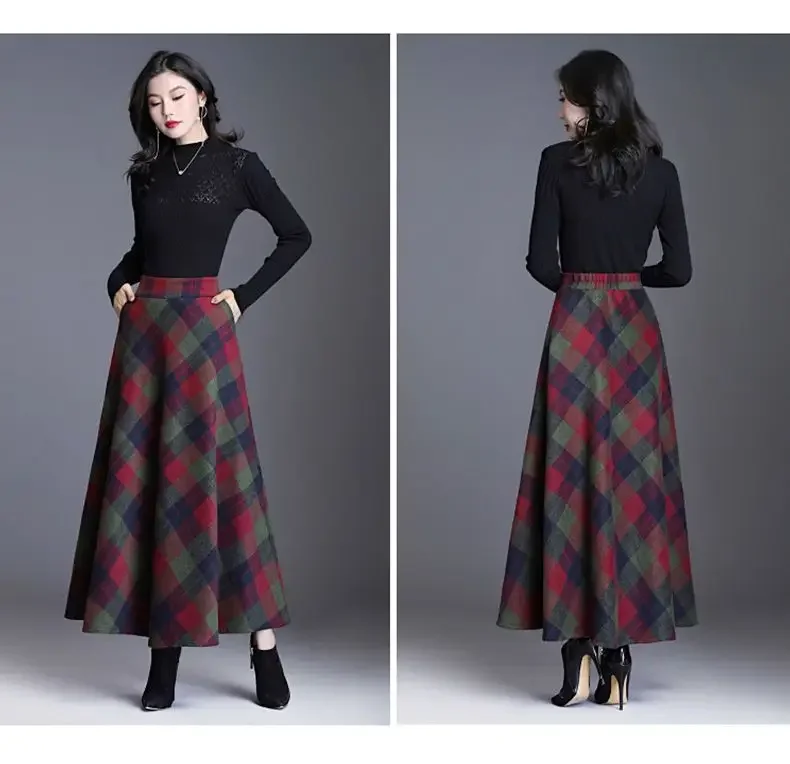 Plaid Woolen High-Waist Zippered Skirt
