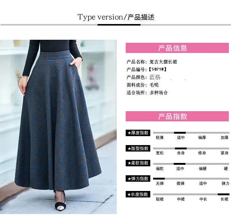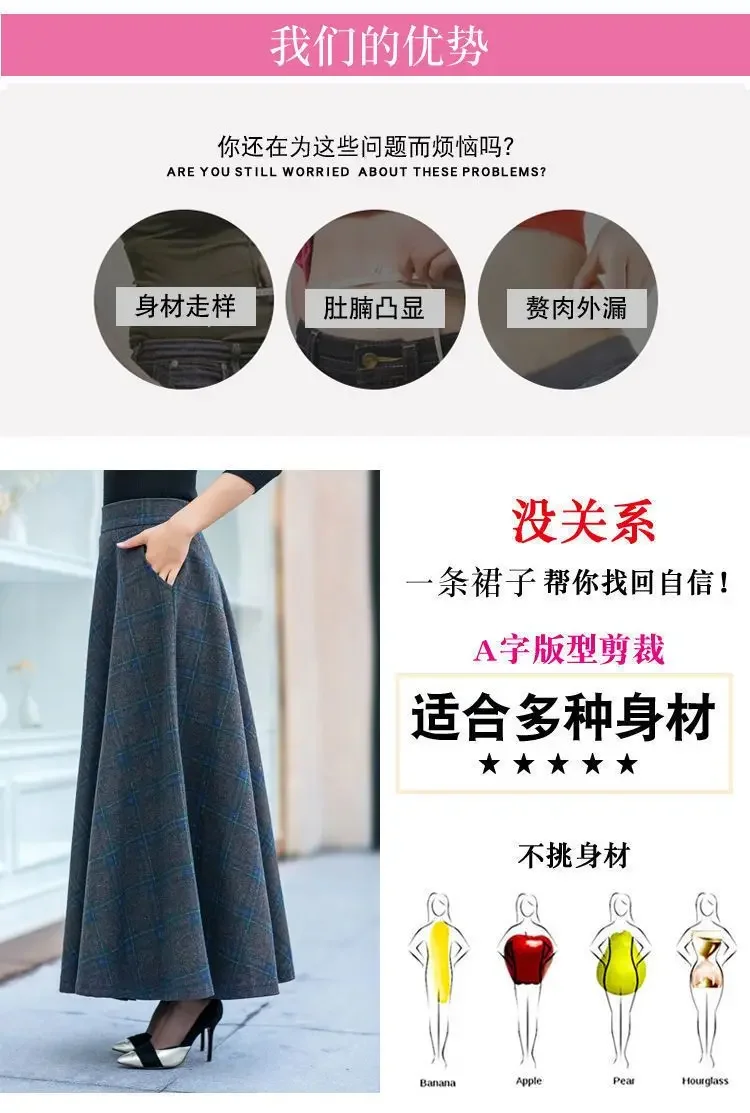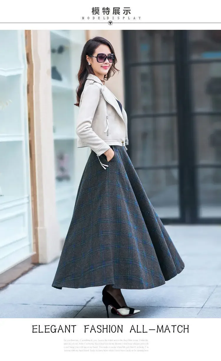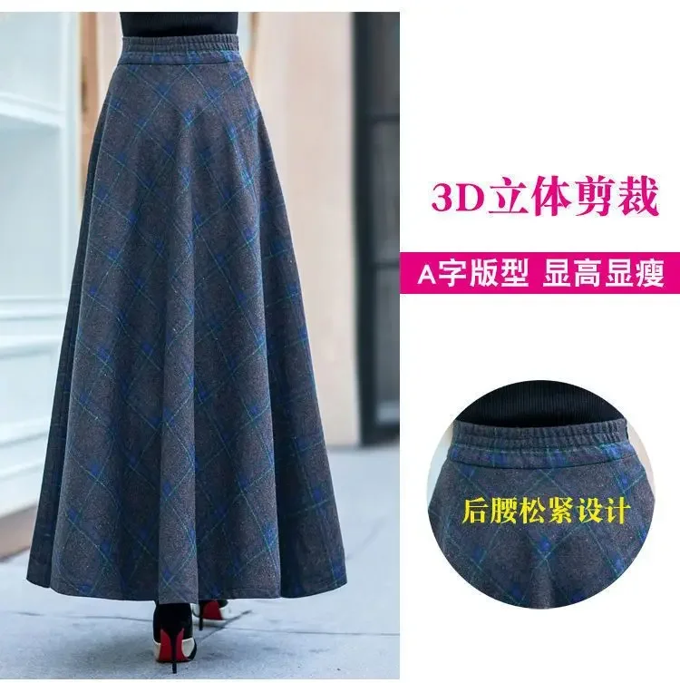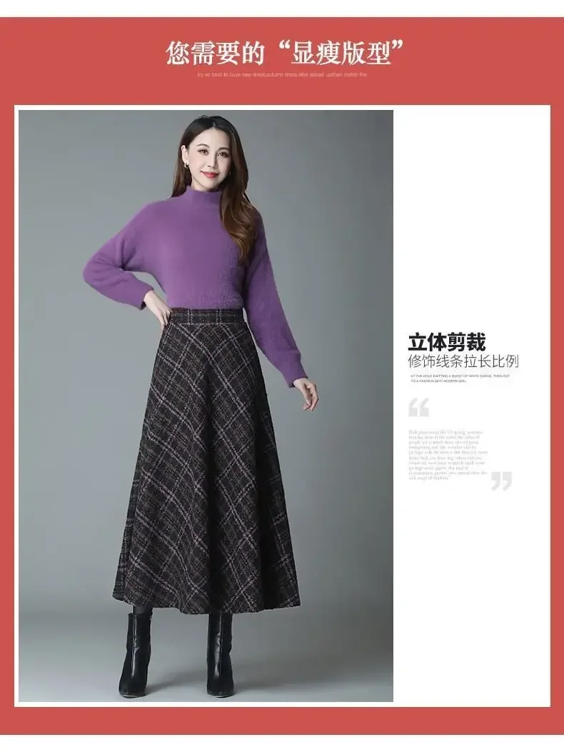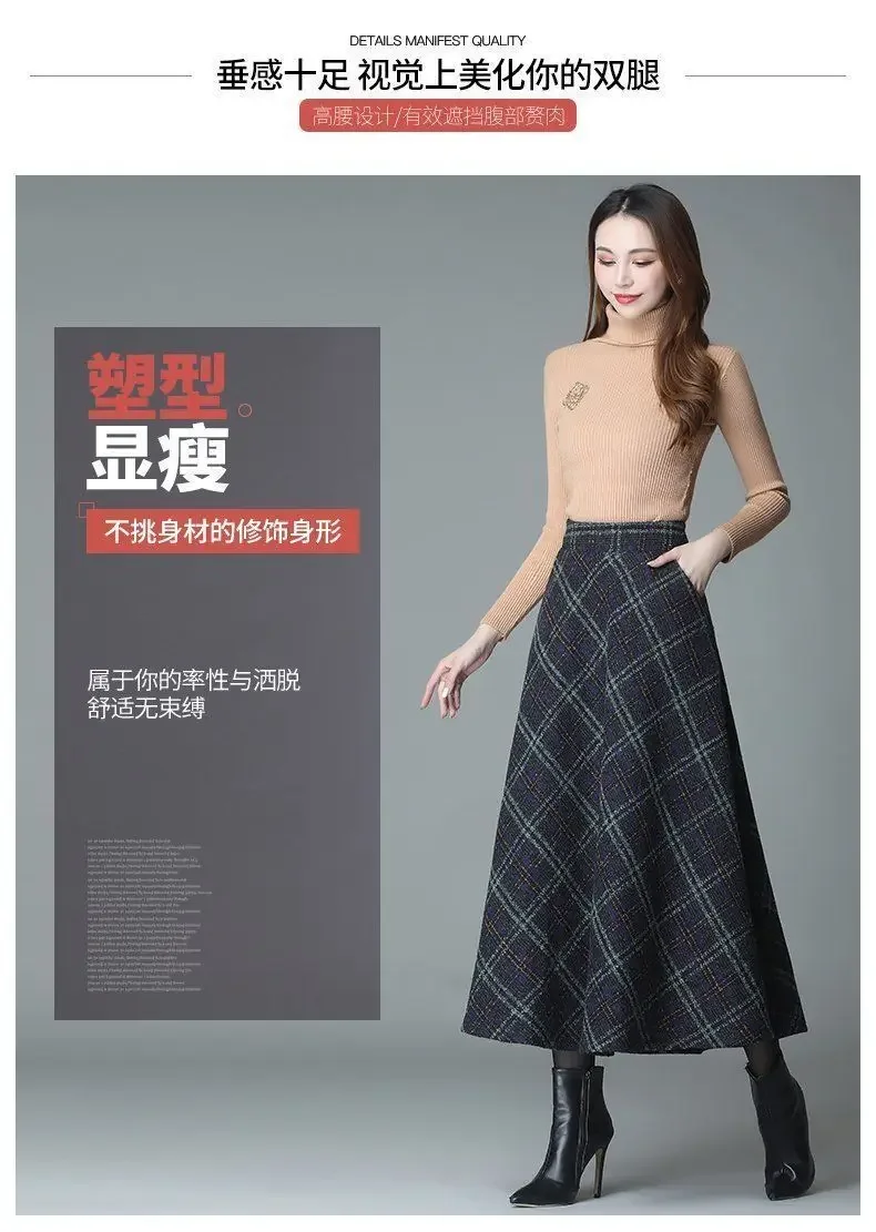 Plaid Woolen High-Waist Zippered Skirt
